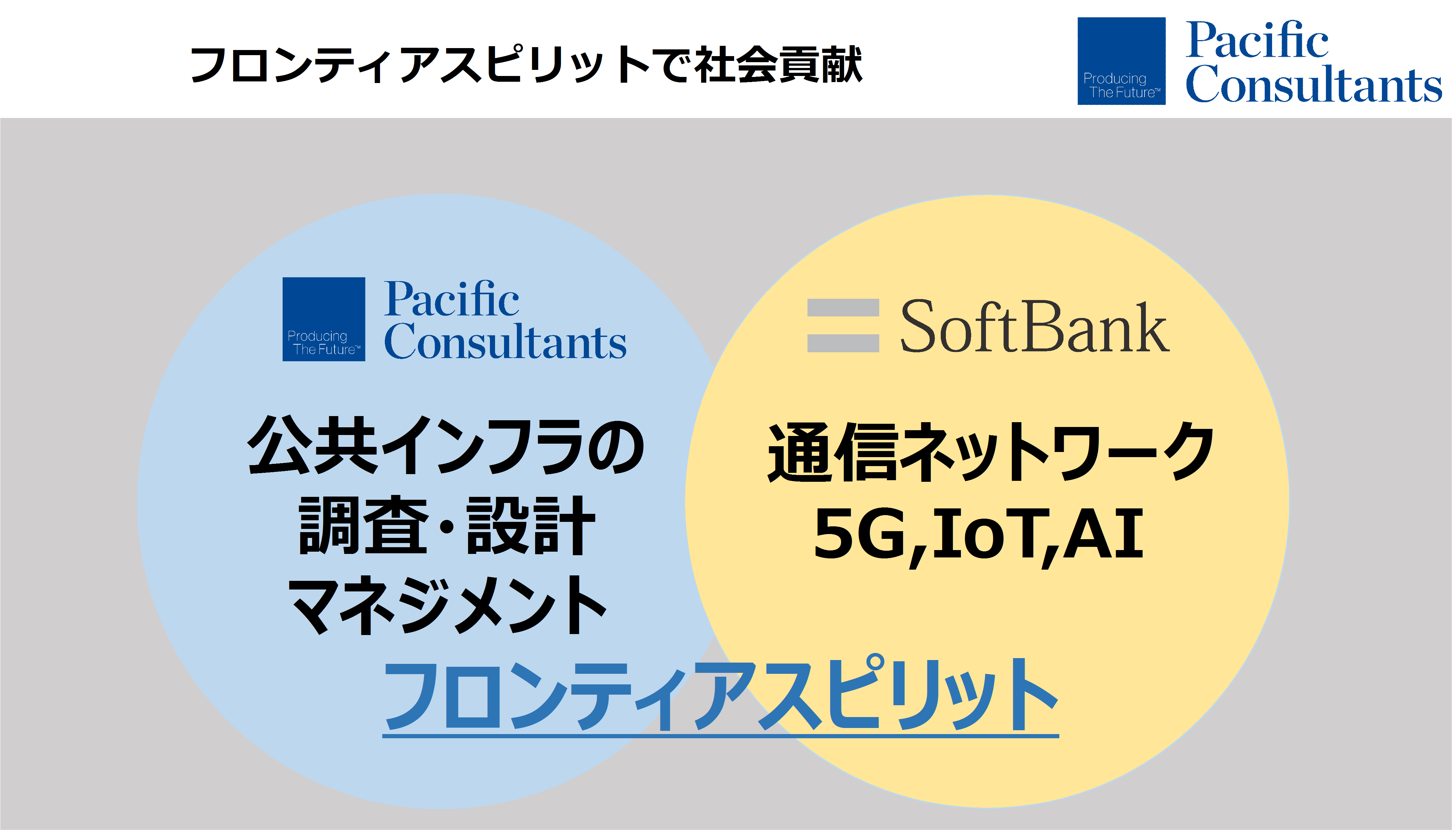 2017年12月には、ソフトバンクと業務提携をした。互いの強みを活かして第5世代移動通信システム(5G)であるIoTなどから取得したデータを組み合わせてAI(人工知能)で分析し、公共インフラの管理などにするスマートインフラソリューションを共同開発していく。