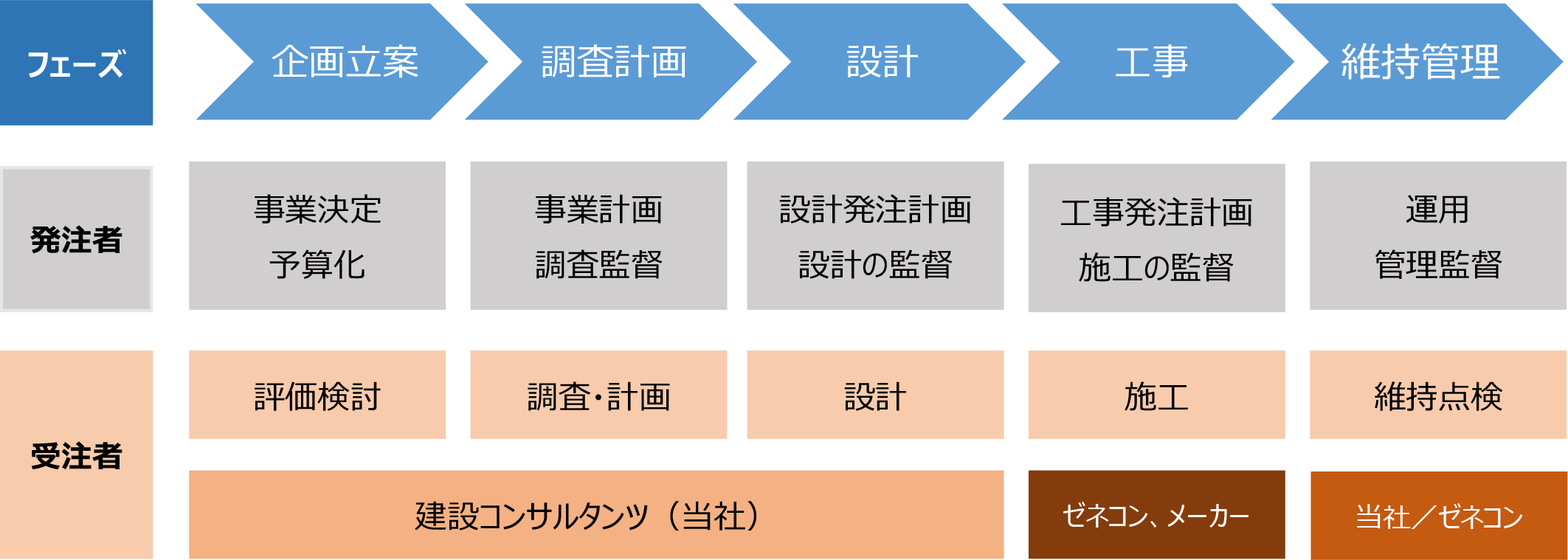 特に建設コンサルタントは、企画から調査設計、維持管理計画の作成まで施工を除く一連の業務を担当している。インフラや公共施設に精通しており、その強みを活かすことができる。