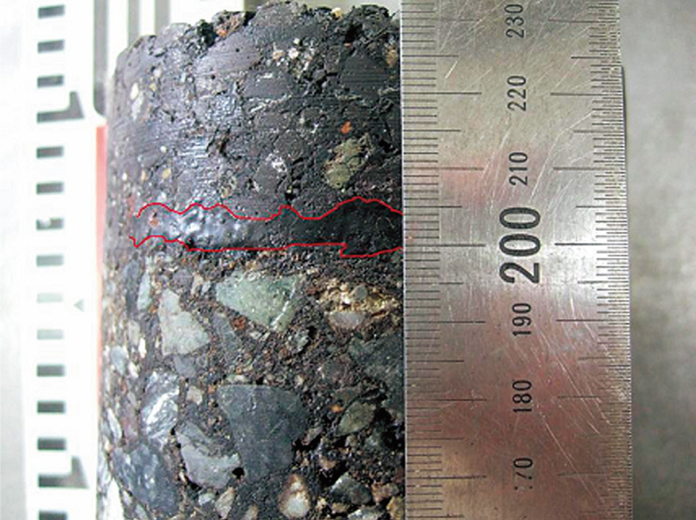 ポーラス混合物下部への充填(赤線) |