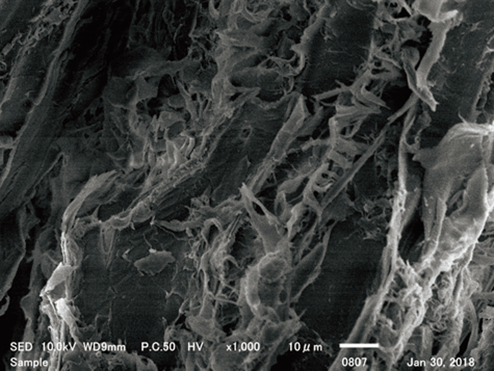 木質資源を特殊処理することによってランダムな繊維構造を実現し、透水性・保水性が
