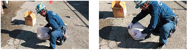 1.配管を解除し、BIB を50秒ほど振ったり転がしたりする。