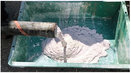 2.ペール缶タイプ(10kg・20kg) ペースト状の製品。 現場で加水・撹拌が必要。 圧送ポンプを使用する様々な状況において 利用可能な製品。 |