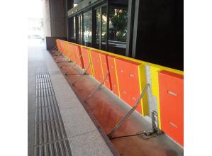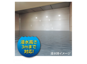 水の浮力で作動する止水板。夜間や無人の施設でも安心、電源不要で大開口にも対応した製品である。