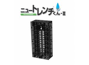 抜群の空隙率で工事面積を大幅に削減した製品。 配管作業が不要、組み立ては連結ピースをワンタッチではめるだけで非常に簡単、工期短縮を可能とした。 上載荷重T-25に対応し、駐車場下の設置も可能。 ニュートレンチくん-Ⅱ独自の本体内部メンテナンス機能つきで、維持管理も非常に容易な製品である。