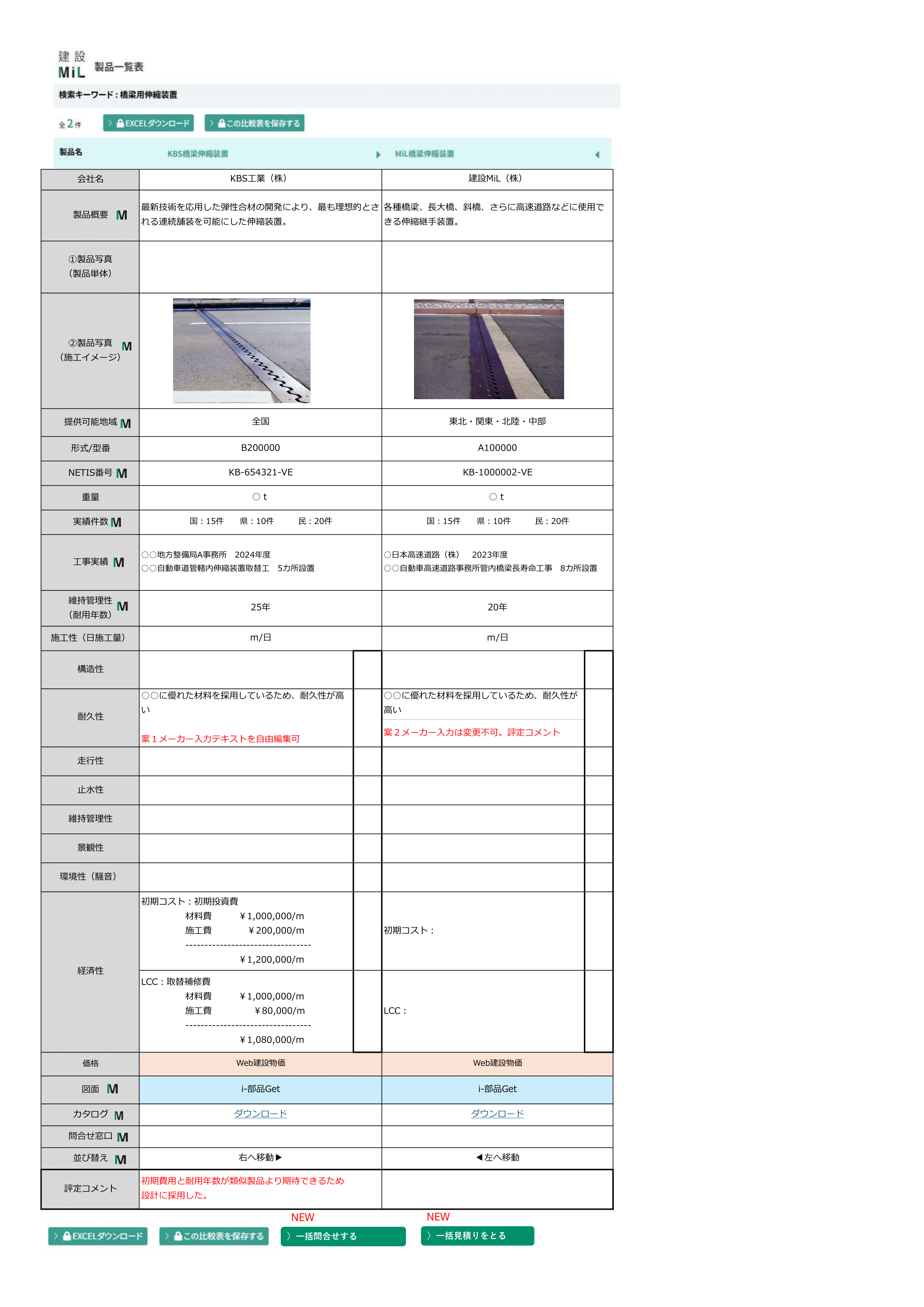 比較表のダウンロードができます。