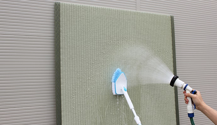 畳表は抗菌仕様になっており、特に大腸菌・ブドウ球菌・白癬菌に効果がある。へりなしの防水タイプで丸洗いできて畳の中に汚れも入らず衛生的に利用可能。
