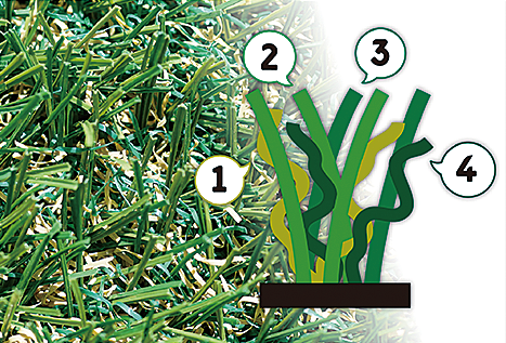 「天然芝のようなリアルさ」「耐久性」「つぶれにくさ」を兼ね備えた形状記憶リアル人工芝。