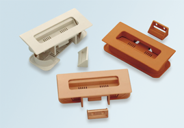 引違い扉用のラッチ付き引手。色は3色から選べる。扉が閉まっている際、ラッチにより扉をロックする。
