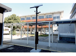 LED街路灯にソーラーパネルとバッテリーを搭載し、防災・防犯効果が期待できる、独立電源のLED街路灯。