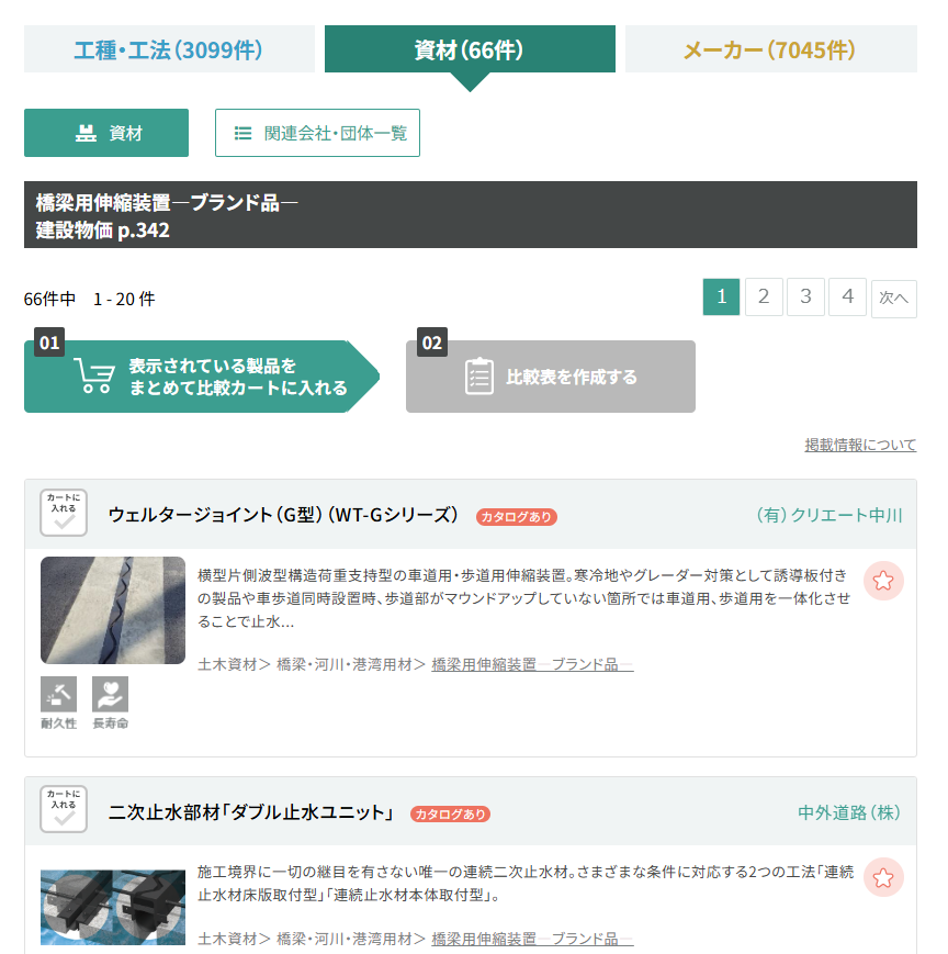 「工種・工法」と「資材」を同時に