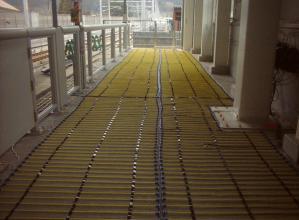 低温冷凍庫のフロアヒーターで、防熱扉の開閉を妨げ、故障の原因ともなる扉周りの凍結を防止。 床面の凍結を防ぎ、作業員の転倒事故や、フォークリフト・運搬機のスリップ事故防止に役立つ。