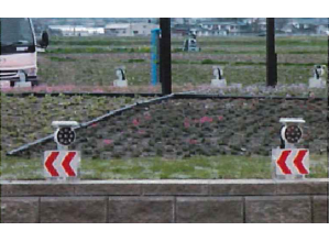 ラウンドアバウトの安全対策製品。新たに制定された規制標識に太陽電池の機能を追加した自発光式規制標識。太陽電池は特殊柔軟性シリコン樹脂でモールドし、車両の衝撃・振動から保護。