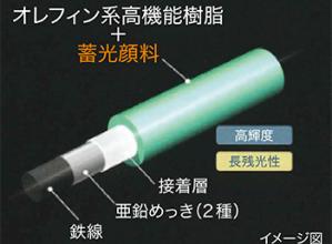 ハイブリッド・ラインは蓄光式の新しい誘導支援資材(フェンス)である。高輝度・長残光蓄光機能を有した被覆線材をフェンスのネットに採用することで、夜間の注意喚起・非常時の誘導を安全に支援する。