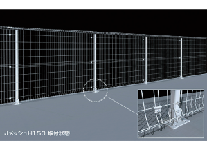 標準のJメッシュ支柱を現地で切断・孔加工を施し本部品を取り付ける。