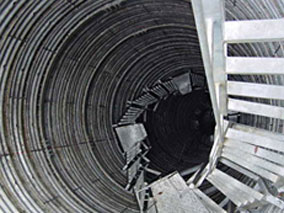 従来のライナープレートより断面剛性の高い、波形鋼板(Jプランクプレート)の開発により、補強部材不要を実現した新型立坑。