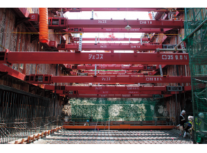 地下掘削工事における切梁式土留め工法で、切梁に角形鋼管を使用し火打ち梁の取付方法を改良した切梁式土留め工法。