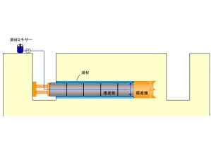 推進工やケーソン工のコンクリート躯体表面に塗布して使用し、推進工滑材やケーソン工沈下促進材と併用することで躯体と地山の摩擦を低減する材料。