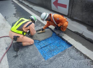 劣化したコンクリート上面を繊維補強超速硬ポリマーセメントモルタルにより断面修復を行う技術。