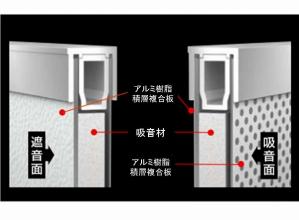 アルミ樹脂積層複合板(以下「複合板」という。)と吸音材及びアルミ形材とを組み合わせた防音仮囲いパネル