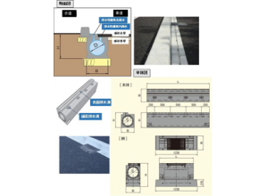 側溝の上まで舗装して、排水性舗装の内部の水は排水し、路肩の平坦性を確保する技術