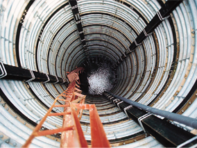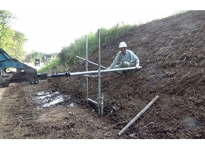 異なる直径の鋼管(有孔管)を組み合わせた押出式構造の集排水パイプ。