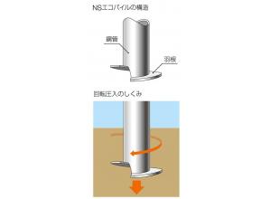 高さ制限や狭隘地への対応が容易な無排土・回転杭工法。