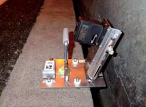 トンネル内等壁面の墨出し作業について、アングルレーザー墨出し装置を用いてレーザー光により測角する技術。