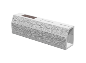 覆土護岸においてブロック表面V型突出部により土砂流出抑制効果と大型化等により施工性を向上させた技術。
