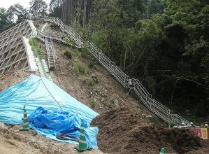 法面工事で安全に作業構台を作る技術。