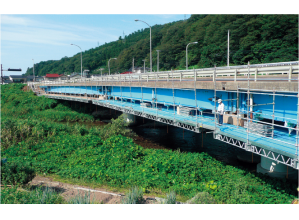 橋梁桁下、建築物の天井下などに仮設の作業フロアを構築する技術