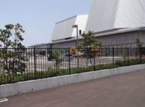 宅地造成等規制法および宅地防災マニュアルに準拠した、高さが0.5m~1.4mのフェンス支柱穴付L型擁壁。