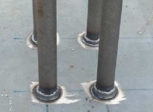 上向きスタッド溶接について、吸盤吸着(エアー吸着)により溶接ガンを固定しスタッド溶接を行う技術。