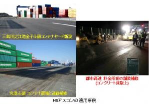 通常のアスファルト舗装工事において、アスファルト舗装の弱点である耐流動性、耐油性を大きく改善し、耐久性の高い新たなアスファルト舗装。