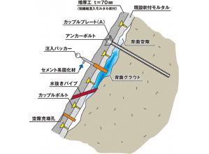 背面地山が風化していない老朽化した吹付モルタルの補修