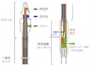 軟弱地盤の改良において特殊攪拌装置によりセメントスラリーまたはセメント粉体を原位置土と混合させる技術