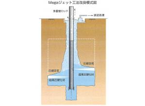 軟弱地盤や液状化地盤等を強化する地盤改良工法(高圧噴射撹拌工法)