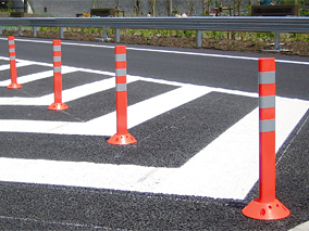 ポストフレックスはポスト交換式の視線誘導標である。従来品の6割程度と低価格であることに加え、3 ~ 5年経過し、汚れた場合にもポスト部のみの交換が可能なため経済的である。また交換作業も簡単。