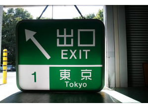 背面が高透過性の繊維シートで、逆光時の太陽光を標識の内部に取り込み、表面繊維を照らす内部照明式の標識