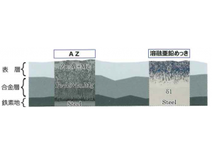 溶融亜鉛アルミニウム合金めっき(AZめっき)は最純亜鉛から成る浴(一浴目)でめっきを行った後、亜鉛―アルミニウムーマグネシウム合金浴(二浴目)でめっきする、いわゆる二浴法で施工する。2019年に...