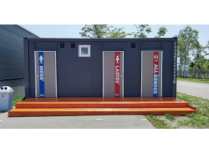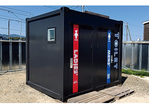 耐水性・耐久性・耐候性に優れたパネル式オリジナルコンテナ(高性能断熱材入り)で作製した移動式(仮設・常設兼用)トイレ。場所を選ばず簡単に設置、撤去できるコンテナユニットは、輸送コンテナのISO規...
