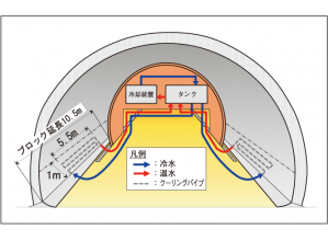 温度ひび割れの発生が懸念されるコンクリート構造物について、ひび割れの発生が懸念される範囲のみを限定して、短期間(1~3日間程度)冷却することでひび割れの発生を抑制する工法。