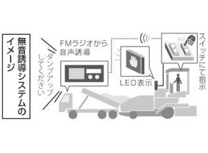 敷均し機械等のオペレータもしくは誘導員のボタン操作により、敷均し機械に設置したLEDパネルの表示と、ダンプトラック運転席のFMラジオの音声を同期制御することで、オペレータもしくは誘導員から運転手...