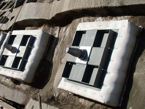 グラウンドアンカー工および鉄筋挿入工用反力体。