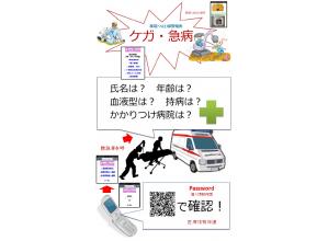 『事故発生時に、登録した工事関係者に事故発生第一報メール送信による事故情報の共有と負傷者の医療情報をWebサーバーより提供するシステム』 ・ 負傷者のQRコードを携帯電話で読取ると、携帯電話の...