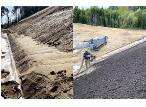 現場の濁水対策や土砂の流出対策に、木チップを利用したフィルター工法。