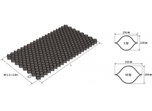 もたれ擁壁構造を高密度ポリエチレンでできたハニカム状の軽量型枠を用いて、土構造のもたれ擁壁を構築する技術。