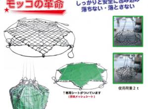 ・ワイヤメッシュ外側端部に懸架用の玉掛用ロープを通し、同端部を束ねるモッコを用いた荷揚げ作業に関する技術