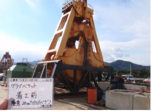 浚渫・掘削時に土砂・濁水が海上及び河川上へ落下しないように、天端部を密閉蓋のみで覆われた、普通地盤用グラブバケット(密閉式)の側面部にゴムパッキンを設置する。 また、バケット外面に土砂付着低減...