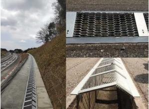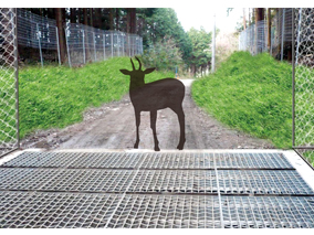 道路に使用可能で動物(シカ、イノシシ)の侵入を防止する為に開発した、最適なグレーチング構造の防護柵。