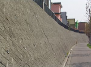 1個当たりの製品面積が1㎡の大型ブロックのため、安全性・施工性に優れ、工期を短縮できる。 胴込めコンクリートをブロックの接合部分に打設することによりブロックが一体化され、より強固な擁壁が構築できる。